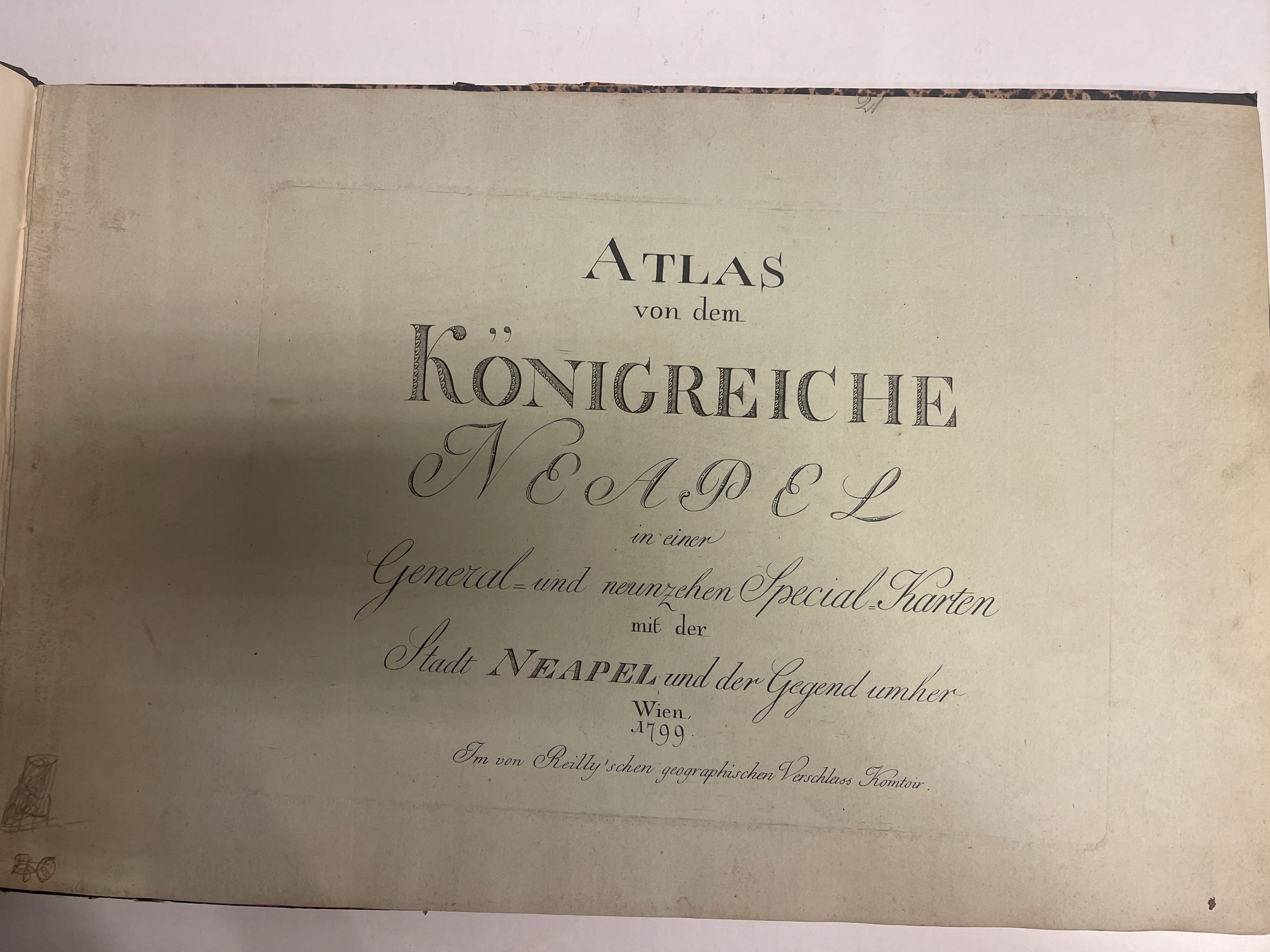 Working in an antiquarian bookshop, surprises are part of daily life. But recently, a discovery stood out: Atlas von dem Königreiche Neapel in einer General- und neunzehn Special-Karten, published in Vienna in 1799 by Franz Johann Joseph von Reilly.